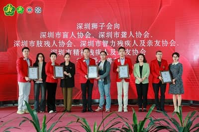会上,深圳狮子会向残疾人服务业协会、深圳市盲人协会、深圳市聋人协会、深圳市肢体残疾人协会、深圳市智力残疾人及亲友协会、深圳市精神残疾人及亲友协会送上支票牌匾,协会向深圳狮子会颁发捐赠证书。爱心企业向残疾人服务协会进行捐赠。