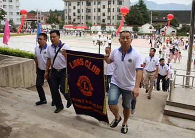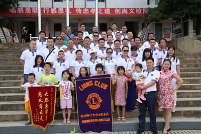 2014年7月13日,风和日丽。深圳狮子会华湘服务队在2014-2015年度上届队长吴献军带领下,一行80余人来到山青水秀、风景如画的湖南省平江县,参加由华湘服务队捐助60万元善款建成的加义镇中学"狮子弘义"广场落成典礼。