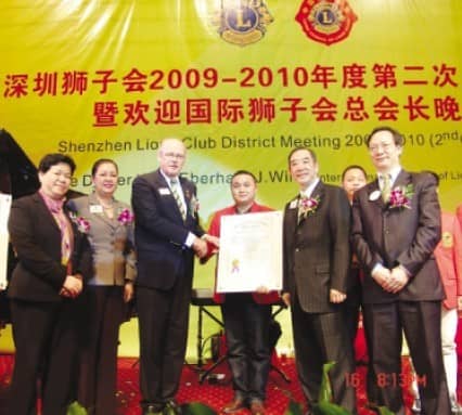2009年12月16日,深圳香蜜湖好世界国宴店热力飞扬,人满爆棚。深圳狮子会2009-2010年度第二次区务会暨欢迎国际总会长晚宴在这里隆重举行。