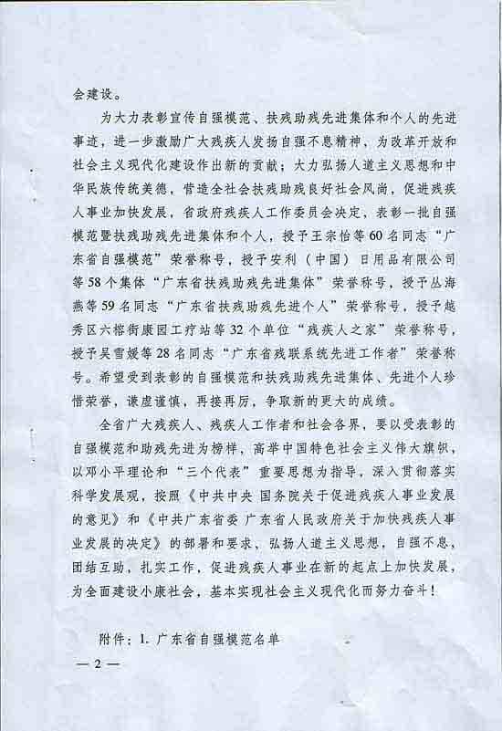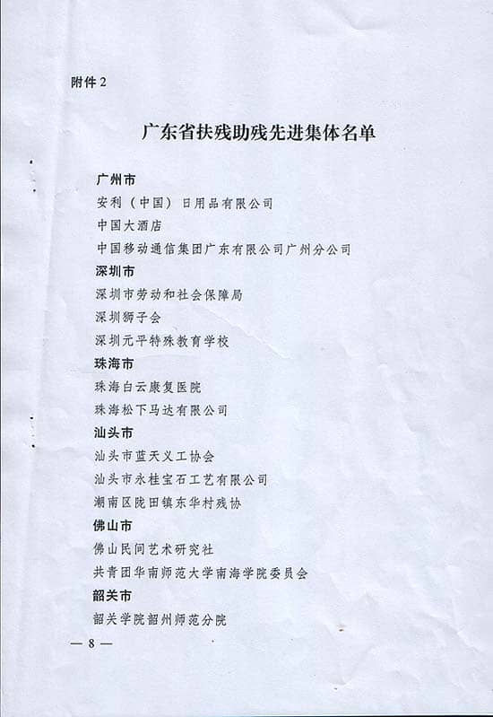 深圳狮子会荣获广东省扶残助残先进集体