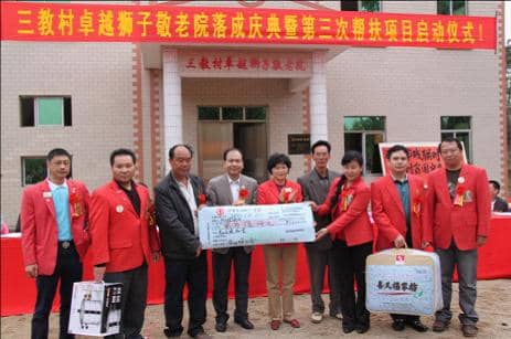 2010年12月21日下午,深圳市残联领导和深圳狮子会一行再次来到雷州市乌石镇三教村,村里自行组织了锣鼓队以最朴实的方式迎接狮友们的到来,村里张灯结彩,共聚在三教村卓越狮子敬老院前,参加敬老院落成典礼。敬老院项目总资金26万元,其中当地民政部门负责6万元,三教村自筹4万元,深圳狮子会中心区服务队及卓越集团捐助16万元修建而成。当天深圳狮子会各服务队代表还将价值2.5万元的生活用品带到了活动现,通过一件件生活物资的传递向村里的孤寡老人表达狮友们那颗颗真挚爱心,肖兴萍总监代表深圳狮子会及卓越集团给三教村村民带去了祝福,祝愿他们在这里度过一个幸福而又美好的晚年。