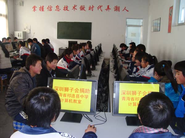在为期三天的助学考察过程中,1100多名来自藏、蒙、回、土等少数民族的孩子给考察团成员留下了极为深刻的印象。由于地处偏远、经济落后加之教育经费投入不足,学校的基础教育设施长期得不到维护更新。特别是学校的电教室中大部分的电脑处于不能开机的状况导致学校正常的电算教程不能得到正常开展,孩子们对于外部的资讯得不到获取,而且由于外语师资的匮乏想通过远程的外语教学又不能实现,因此该校连外语的教学都难以开展。