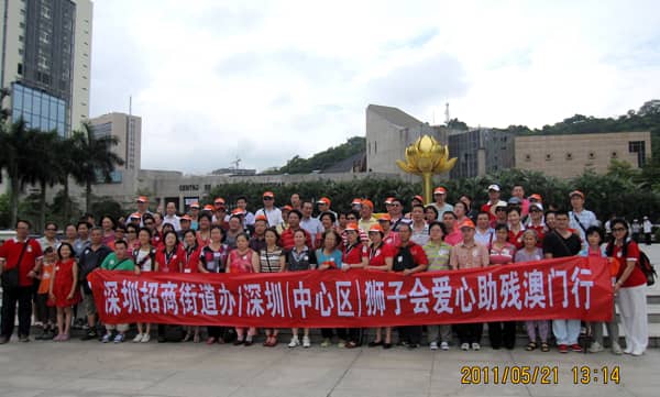 深圳狮子会中心区服务队于5月21日组织招商街道办辖区残障人员前往澳门。这是继去年5月组织辖区内残障人员去香港一日游后,为了满足残障朋友们一睹澳门风采的愿望而再一次组织的慈善服务活动。