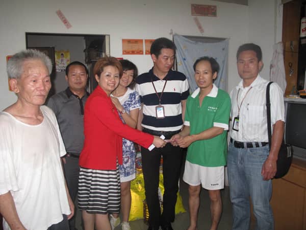 为了帮助荆先生一家减轻负担,五湾社区工作站先后为其已退休的父母找到了做保安及洗碗的工作。日前,获悉情况的深圳狮子会泰盛服务队,在孙会长及狮友代表组织下,又为他们送去了油和大米等慰问品以及1000元慰问金。鼓励他以积极向上、顽强的精神战胜病魔。