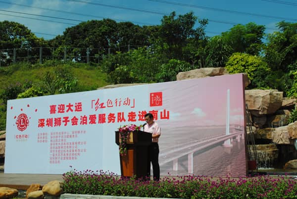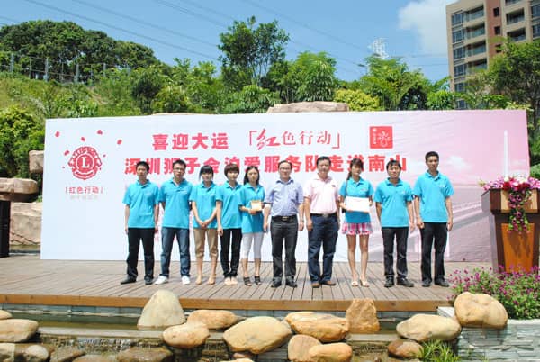 2011年8月8日上午九点半,“红色行动走进大南山”活动在位于深圳市南山区东滨路大南山登山口拉开了帷幕。本次活动由深圳狮子会泊爱服务队发起,组织众多企业参与。冒着酷暑,顶着烈日,深圳狮子会泊爱服务队会员在会长张锋狮兄的带领下,不辞辛苦,组织各企业员工参与捐血活动。