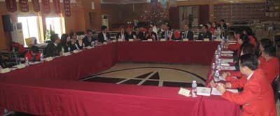 2011年12月26日上午,由马来西亚308-A2区狮子会总监陈书根、前国际理事爱丽丝带队的马来西亚308-A2区狮子会狮友代表团共14人到访深圳狮子会。深圳狮子会在区会办事处召开欢迎座谈会,与马来西亚狮友进行座谈交流。深圳狮子会总监郑德刚狮兄、第二副总监吴晓明狮兄、总务长李月华狮姐、纠察长俞潜狮兄、对外交流委员会主席王星越狮姐、执行主席朱明娟狮姐等近20名狮友参与了座谈。