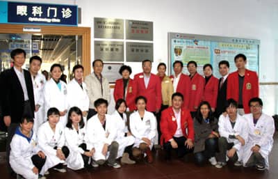 下午3:00,参加仪式的全部人员前往深圳市眼科医院,参加在深圳市眼科医院设置的低视力康复项目视觉评估部揭牌仪式。仪式前,深圳狮子会代表在眼科医院五楼会议室进行了与眼科医院代表的座谈,沟通了关于开展低视力项目的具体事宜。眼科医院非常重视该项目,成洪波院长、秦波副院长、医务处邓宏伟副科长及医院各科科长均出席了座谈会。成洪波院长对深圳狮子会在深圳市眼科医院开设低视力门诊表示欢迎。他指出,低视力工作在中国现阶段还不够完善,通过参与深圳狮子会开展的低视力活动、在眼科医院设立低视力门诊,补充和加强了眼科医院在低视力方面的工作和研究,希望以后有机会与深圳狮子会合作开发一套先进的低视力康复辅助器材,在全国推广低视力工作。