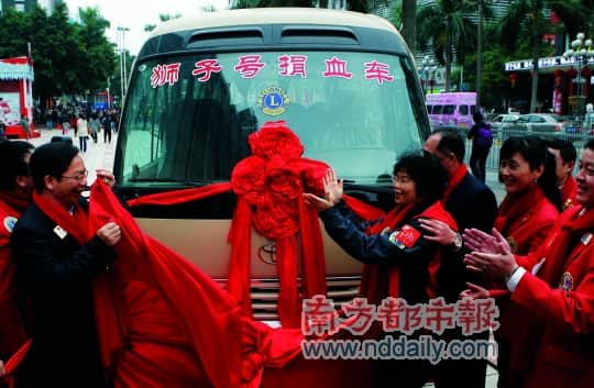 昨日中午,深圳狮子会狮友们来到华强北茂业百货广场,启动2012年“红色行动”狮子捐血月活动。相比去年首个狮子捐血月,今年参与的狮友翻倍。在仪式上,狮子会将筹款40多万元所购的“狮子号捐血车”,交送深圳市血液中心。改装完成后,这辆全新中巴面包车将取代现有的采血大巴。昨日在现场,市血液中心还免费为市民测血型量血压,表彰无偿献血的个人或企业。