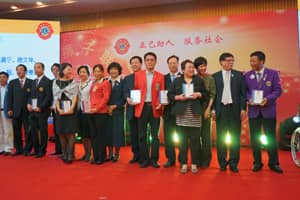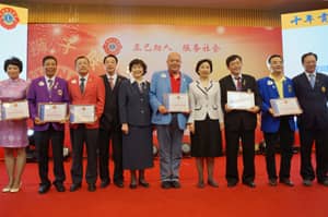 12日晚举行了盛大的中国狮子联会颁奖联谊晚会,表彰了中国狮子联会2011-2012年度杰出会员、杰出服务队、优秀服务项目、十年贡献奖和特殊贡献奖。杰出会员共96人,深圳狮子会徐非、黄承、吴嘉宁、唐文萍、钟光明、来君、李超、李超、朱雪樱、陈欣、陈淑欢、单丽月、陈建都、王晓梅、李忠杰、黄雪兰、叶绍华、雷高清、蔡勇卫、何薪如、王成、程家龙21人荣获此奖。杰出服务队共17支,深圳狮子会主会、滨河、益田及泊爱4支服务队荣获此奖。优秀服务项目共12个,深圳狮子会“广西金秀生态经济林”植树活动、春风图书馆2个项目荣获这个奖项。十年贡献奖共2个,深圳狮子会荣获此奖。特殊贡献奖共7个,深圳狮子会2011-2012年度总监郑德刚荣获此奖。致敬刘小钢副会长环节将晚会气氛推向高潮,各地区狮友纷纷上台献上对她的祝福及爱戴。深圳狮子会40多名代表手捧花束及礼物在郑德刚总监的带领下一一上台献上对刘小钢副会长的敬爱和感谢,很多狮友红了眼眶。晚会上,各地区狮友的精彩表演使在场狮友纷纷拍手叫好。