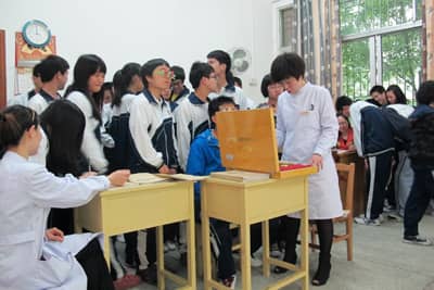 这次探班之旅是由文源静、李照教出资,为156名同学进行免费验眼配镜以及复查活动。地王服务队创会会员文源静是国内知名医学视光中心连锁机构——“静文爱眼”总经理,早在“寒门英才班”组建时,她就承诺要提供学生视力检测和护眼培训所需六万元费用。这次她又亲自率领其专业医护团队一行六人,日夜兼程地赶往河源为学生检测视力。为配合这次活动,地王服务队资深会员、“李白视界”总经理李照教专门派人运送验眼配镜医疗器械。在这里,要特别感谢地王服务队秘书黄雪兰,她在活动前做的大量联系、沟通和准备工作,才有了活动的顺利有效进行,还要感谢兄弟队的狮友们在我们人手不够时主动提供帮助。周六上午,156名学生的视力检测和复查已全部完成,共有52名学生需要配镜或重新配镜,文源静再三叮嘱孩子们一定要爱护眼睛,并给孩子们讲述很多关于眼睛的健康知识。
