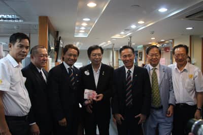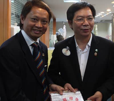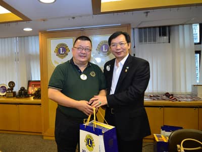 张新村狮兄向苏泽然总监赠送了国际狮子会肾病教育中心的会旗和徽章。听闻国际狮子会肾病教育中心将于8月18日举行换届活动,深圳狮子会苏泽然总监表示祝贺并捐赠5000元。