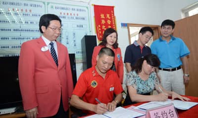 上午九点,首个揭牌及服务协议签约仪式在龙城街道职康中心举行,中国狮子联会副会长张国筠,深圳狮子会2012-2013年度总监苏泽然,第二副总监林子钰,秘书长张晓玮,纠察长张红象,副秘书长张志河,第二十一分区主席李越滨,助学扶贫助残委员会主席黄承,社区服务活动委员会主席高征及龙城服务队会长郑玉宽、阳光服务队会长胡晓斌等二十多位狮友参加了仪式。仪式由社区服务活动委员会主席高征主持。深圳市残联副理事长黄纯斌在致辞中对深圳狮子会一直以来关心关注深圳残疾人事业表示肯定和感谢,深圳狮子会总监苏泽然在致辞中表示,“红狮服•助残站”是深圳狮子会今年重点推出的一项品牌服务项目,深圳狮子会将发扬“我们服务”的狮子精神,由服务队与职康中心开展“一对一”定点服务,在心理疏导、康复训练、特困帮扶等各个方面向残疾人朋友提供帮助。由服务队会长任助残站站长,第一副会长任副站长,确保服务项目长期持续发展。