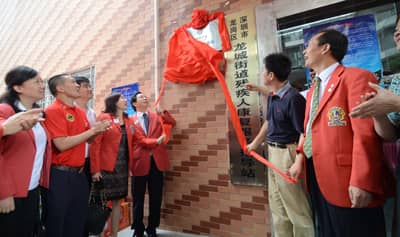 2012年9月14日,深圳市残联、深圳狮子会、龙城和坪地街道负责人及多位狮兄狮姐齐聚龙城街道职康中心和坪地街道职康中心,为深圳狮子会“红狮服•助残站”举行揭牌仪式,并开展中秋慰问活动。
