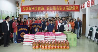 为了更好地关注弱势群体,弘扬“奉献、友爱、互助、进步”志愿者精神,传递志愿者文化,2012年12月3日,深圳狮子会前海、蛇口服务队的狮友们在前海服务队会长刘政荣和蛇口服务队辛海廷带领下,开展“传递温暖、奉献爱心”的爱心助残活动。活动当天狮友们将满载爱心的大米、食用油、水果送至南山区南头街道办事处残疾人康复工疗站,给康复工疗站的残疾人们送去真挚的温暖。