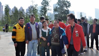 “好开心!很久没有出来这样玩了。”东门街道职康中心残疾人阿华非常兴奋地说。2012年12月8日,深圳狮子会慈善收藏服务队组织“共享一片蓝天”主题联谊活动在莲花山脚下举行。助学助残扶贫委员会主席黄承狮兄,香山服务队、大地服务队狮友以及爱心朋友们应邀参加。