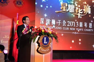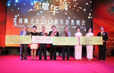 2012年12月29日,深圳狮子会的年度盛会“星耀华狮——深圳狮子会2013新年慈善晚会”在深圳福田香格里拉酒店举行。国际狮子会、中国狮子联会、深圳市残疾人联合会、市民间组织管理局、市慈善会、市关爱办等单位的领导,以及港澳、广东、青岛等地的狮友与深圳狮子会狮友五百多人欢聚一堂,喜迎新年。