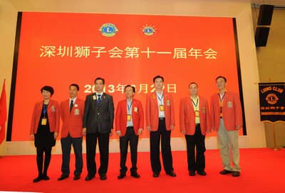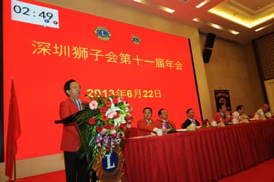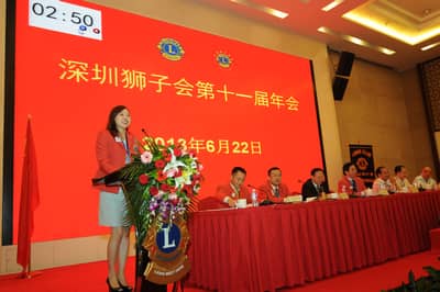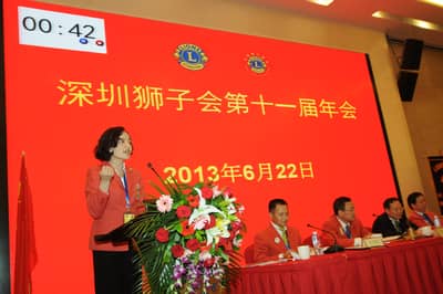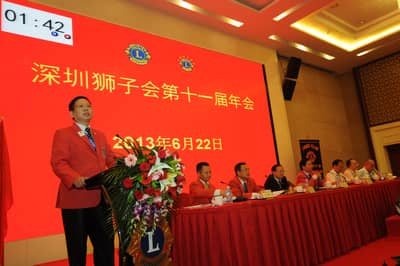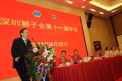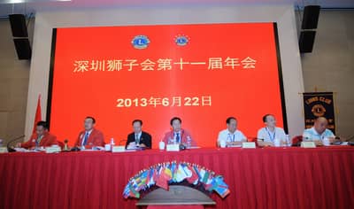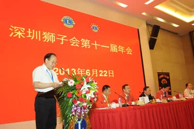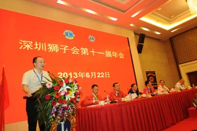 2013年6月22日,深圳狮子会第十一届年会在深圳麒麟山庄顺利召开。深圳狮子会总监、副总监、前总监、理事会成员及各服务队会员代表200多人参加了年会。中国狮子联会副会长张国筠,深圳市残联副理事长黄纯斌,深圳市民间组织管理局副局长李文海等单位领导出席了会议。