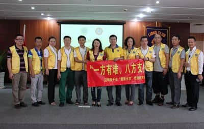 2013年8月19日,深圳狮子会在办事处举行潮南抗洪救灾先锋队出发仪式,并迅速采购物资,前往汕头市潮南区开展紧急救灾服务活动。深圳狮子会2013-2014总监吴晓明、第一副总监林子钰、第二副总监林桃、总务长施建永、第二分区主席周婷、会员发展委员会GMT执行主席周晓阳及泰安、林茂、慈善收藏等服务队狮友出席出发仪式。