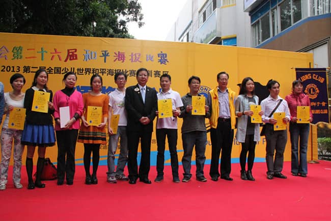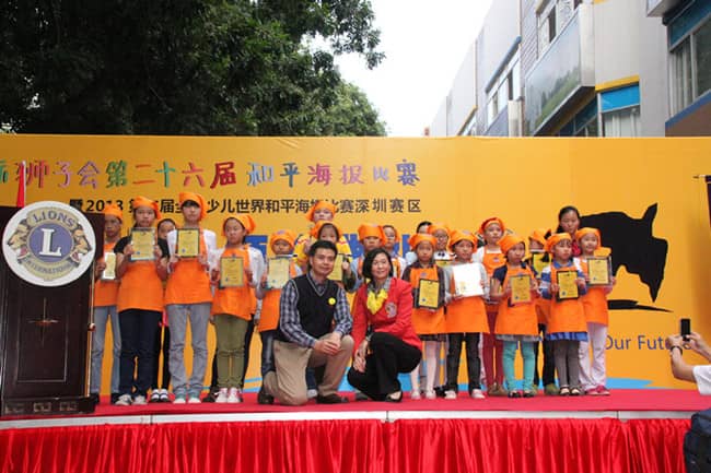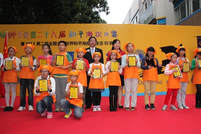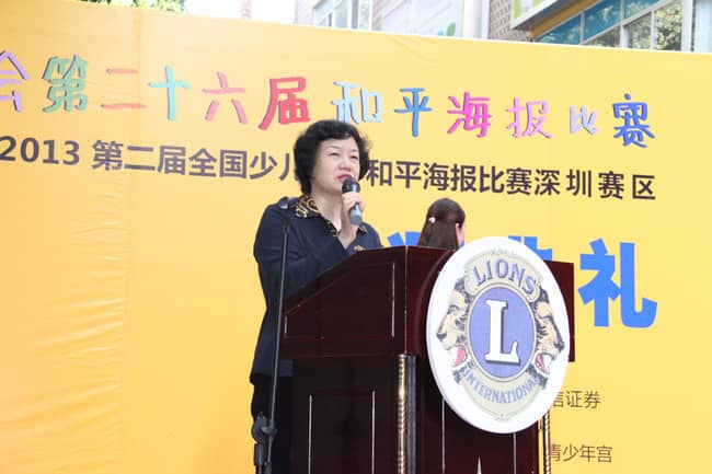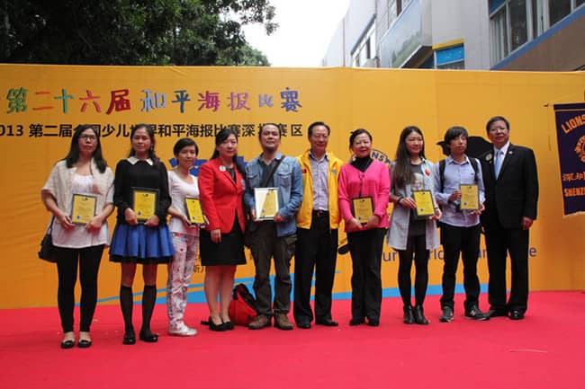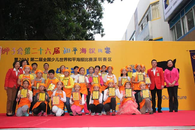 2013年11月24日,"我们的世界, 我们的未来"——国际狮子会第二十六届国际和平海报大赛暨2013第二届全国少儿世界和平海报大赛(深圳赛区)颁奖典礼在深圳福田区台湾花园安迪斯儿童广场顺利举行。中国狮子联会常务副会长张国筠,深圳市残联理事长祖玉琴,深圳狮子会2013-2014年度总监吴晓明、第一副总监林子钰、秘书长张晓玮,深圳市关爱办、市关工委、学校和美术机构教育部门代表及获奖学生代表等500多人参加了此次活动。