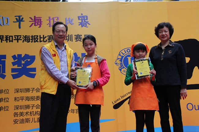 深圳狮子会在各级政府与社会各界热心人士的大力支持下, 自2004年起参与国际和平海报比赛的评选活动, 并取得了巨大的成功, 到今年有近六万多名深圳赛区的小画家参与了比赛, 和平的种子落在每一位参加比赛的小朋友心中, 和平的理念也伴随着孩子们共同成长。深圳狮子会选送的作品曾获得三届“全球佳作奖”。2004-2005年度来自深圳南山实验的曾伟成《给和平一个机会》;2007-2008年度来自深圳南山实验的李佳真《和平遍布全球》;2012-2013年度比赛中来自深圳的小学生麦芊芊的《想象和平》均获得全球佳作奖。