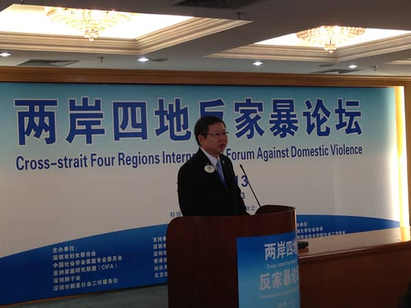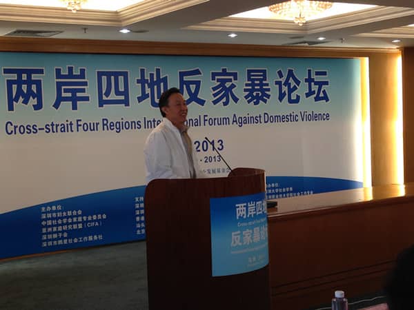 2013年11月23-24日,由深圳狮子会、深圳市妇女联合会、中国社会学家家庭专业委员会、亚洲家庭研究联盟及深圳市鹏星社会工作服务社等单位共同主办的“2013年两岸四地反家暴论坛”在深圳市政协礼堂成功举行。深圳市政协副主席钟晓渝、中国妇女发展基金会副秘书长朱锡生、深圳市妇女联合会主席马宏、深圳市关爱办常务副主任陈励等领导,两岸四地致力推动反家暴研究的朱杨珀瑜、陈丽云、易松国等专家学者,马克•奥巴马•狄善九等社会爱心人士,深圳狮子会2013-2014年度总监吴晓明、财务长陈诗君、总务长施建永、公益文化研究中心主席高洲、执行主席杨宗儒、伍柳江狮兄等近200人出席活动。