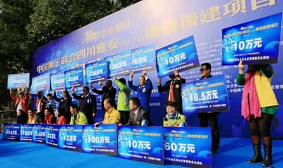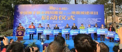 2013年11月30日,中国狮子联会雅安4•20灾后援建总金额为2298.4万元的系列公益项目启动仪式在四川雅安举行(其中深圳共捐赠677.4万元)。国际狮子会前总会长谭荣根、中国狮子联会王乃坤会长及来自深圳、广东、大连、青岛、北京、浙江、陕西、沈阳、哈尔滨、成都及港澳303区的领导狮友们共同参与和见证了这个重要的历史时刻!