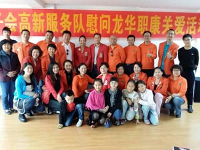 2014年3月22日,深圳狮子会高新服务队狮友及家属一行30人来到“红狮服•助残站”龙华职康中心开展敬老助残慰问活动,向25位残疾人朋友分别捐赠价值200元的大米和食用油,服务经费5000元;狮友陈群好、文燕梅专门为老人家带去水果、牛奶、点心等适合老年人享用的食品,服务经费2100元。总服务经费7100元。