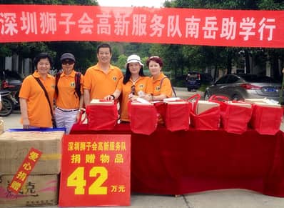 2014年5月16日,深圳狮子会高新服务队2013-2014年度会长邓毅带领4名会员,前往衡阳南岳区实验中学开展助学活动,捐赠价值40万元的1000副眼镜架以及2万元的足球、羽毛球、乒乓球等体育用品。