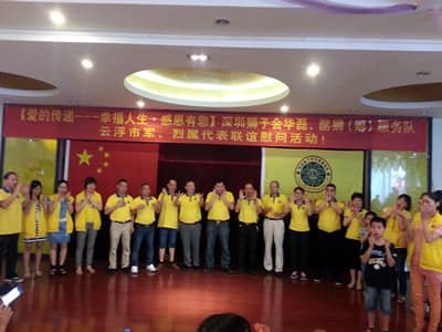 6月21-22日,深圳狮子会华磊服务队狮友及准狮友一行30人前往广东省云浮市对军烈属代表带去了一份温暖,送去慰问。活动得到了当地政府的大力支持,参与人数达180人,共给35位军烈属送上慰问金46000元和价值9424.90元的35份由食用油、大米、米粉组成的慰问品,狮友们还宴请军烈属们。