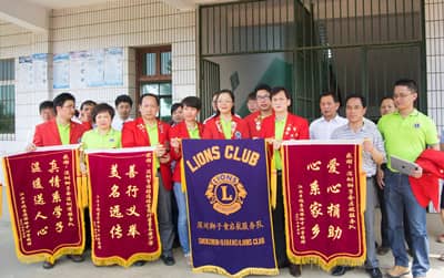 2014年5月12—13日,深圳狮子会启航服务队组织狮友到江西省丰城市开展 “狮暖江西•助学行”活动。深圳狮子会启航服务队创会会长黄鑫,2013-2014年度第一副会长邝红、第二副会长黄力生及深圳湾服务队刘志友等9名狮友参加了活动。资助的对象为江西丰城市袁渡镇佛岭中心小学。早上出发时还是乌云密布到了下午已经晴空万里,大家心情格外舒畅,一路欢歌笑语。