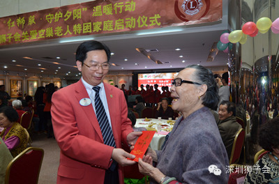 “爱的传递•守护夕阳”—— 2015年2月,深圳狮子会将开展关爱空巢老人系列服务活动。通过春节慰问、组织新春联谊活动等形式,让社区空巢老人感受到新春的温暖和喜庆,给予他们资金或物资方面的帮助,丰富他们的精神文化生活。