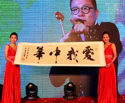 在8月8日晚上的慈善晚会上,东南亚著名烙画、书法、篆刻艺术家、中国烙画书法篆刻艺术研究院名誉院长朱培杏博士当场挥毫泼墨,捐赠了自己现场书写的书画作品《江山如画》,以及极具代表性的书法《爱我中华》和烙画作品,引起现场观众的强烈反响。