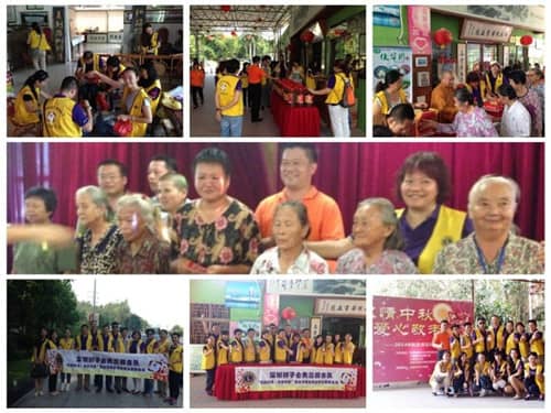 2014年9月4日,深圳狮子会天恩服务队于在大鹏俊华园举办了“浓情中秋,爱心敬老”的敬老主题活动。来自大鹏布新居委会、大鹏东山寺、俊华园旅游服务公司等爱心单位一起参加了本次活动。200余名老人在俊华园欢聚一堂,共同庆祝中秋佳节。百善孝为先、尊老敬老是中华民族的传统美德,也是天恩服务队创队服务活动的主要导向。