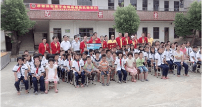 活动当天,锦绣服务队向古坑小学捐赠100套课桌椅和30套电脑物资。这批善款和物资将用于古坑小学200名学生的学习。在当天的活动中,古坑小学向锦绣服务队赠送锦旗表示感谢。