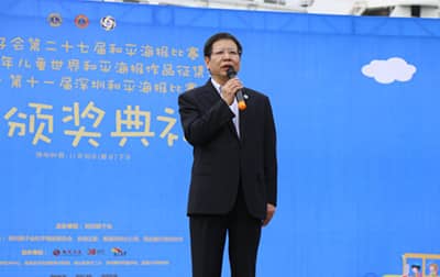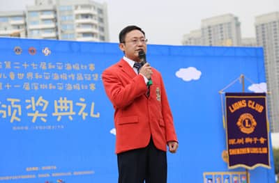 2014年11月30日下午,“和平、爱和理解”——国际狮子会第27届和平海报比赛暨2014全国少儿和平海报深圳赛区颁奖典礼以及获奖作品展览活动在深圳市蛇口海上世界C区水景广场盛大举行。深圳市残联副理事长黄纯斌,深圳狮子会2014-2015年度会长林子钰、监事长王锦良、上届会长吴晓明、第一副会长林桃、前会长戴同鑫、秘书长曾石养、财务长俞潜、第十一分区主席黄小玲等领导以及学校美术机构教育部门代表、获奖学生的代表、合作单位——凤凰房产(深圳)、招商商置、安信证券、民生银行、中国联通的有关领导等700多人参加了此次活动。