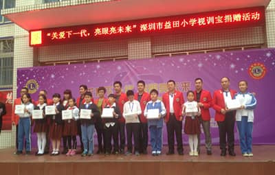 2014年12月1日,深圳狮子会东方玫瑰服务队和华汉服务队在福田区益田小学举行仪式,启动“关爱下一代,亮眼亮未来”的主题活动,将100套护眼设备视训宝捐赠给该校学生,帮助他们进行近视防护。市关爱办、市教育局、益田小学等单位有关领导和东方玫瑰服务队、华汉服务队的20多名狮友一起参加了捐赠仪式。