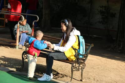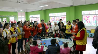 下午,狮友们来到华阳特殊儿童康复中心与孩子们互动并观看了孩子们的节目表演,孩子们用他们自己的方式表达着喜悦、感激之情,其中一个孩子唱着《感恩的心》并吃力的做着手语操时,狮友们无不为小朋友们的不幸遭遇深感痛心,狮友们不停的拍手鼓掌,以示鼓励。