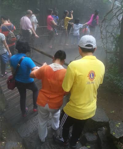 2014年11月1日, 蓝天白云,秋高气爽,深圳狮子会笔架山服务队联合莲花山服务队组织福保街道职康中心的残疾人和工作人员一起到南山青青世界游玩,参观迷人神秘的热带雨林、美丽自然的蝴蝶谷,观看激动人心的表演并共进午餐。游玩中,狮友们和残友们通过交流了解到职康中心的需求。