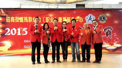 2015年3月5日,深圳狮子会中心区服务队2014-2015年度队长胡莘、第一副队长陈秋芬及狮友曹严、马伟、李行华、张雪、詹红军来到招商街道办花果山社区与辖区残联的近百名残疾人朋友共度元宵佳节,街道办领导全体出席。