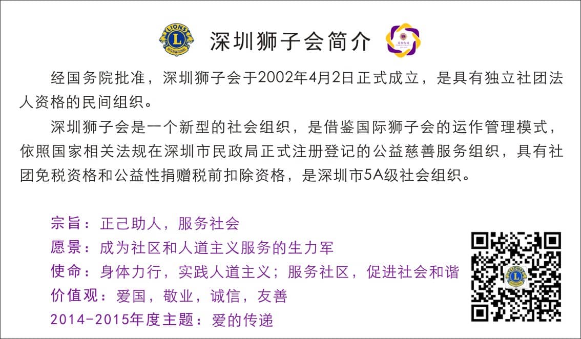点击下载:深圳狮子会2014-2015年度(爱的传递名片模版)正面