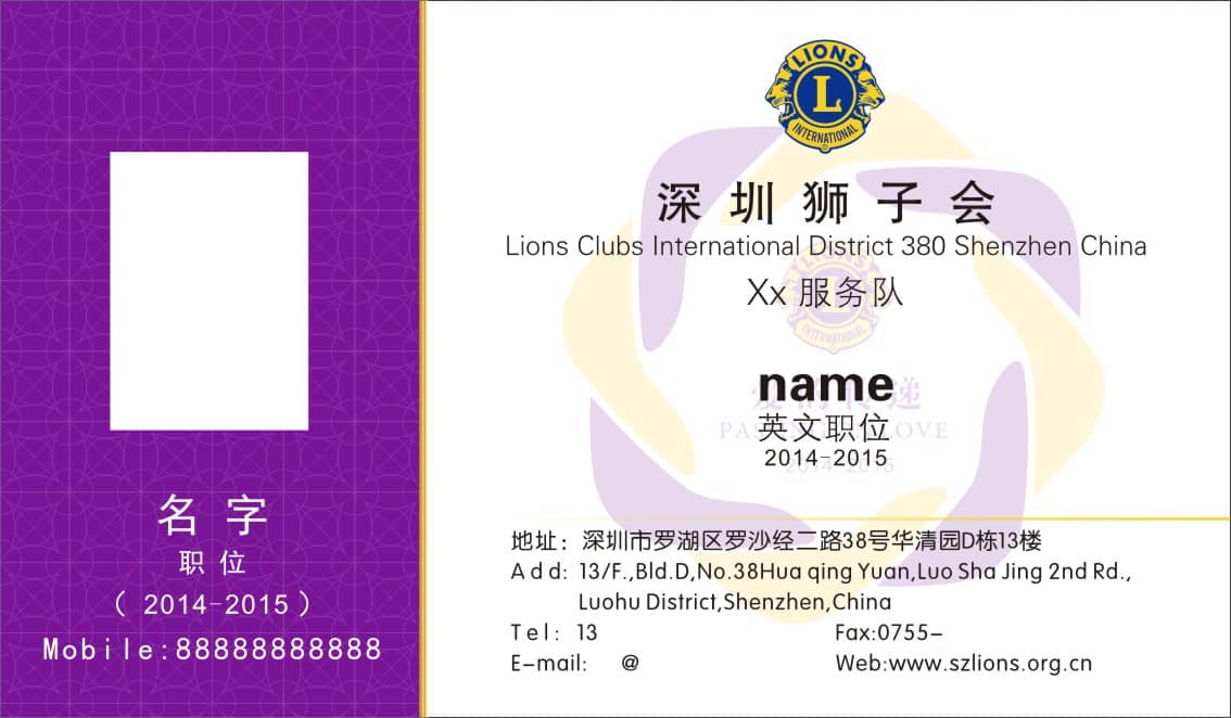 深圳狮子会2014-2015年度名片(空白)模板