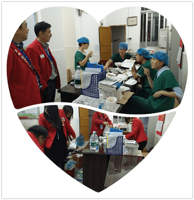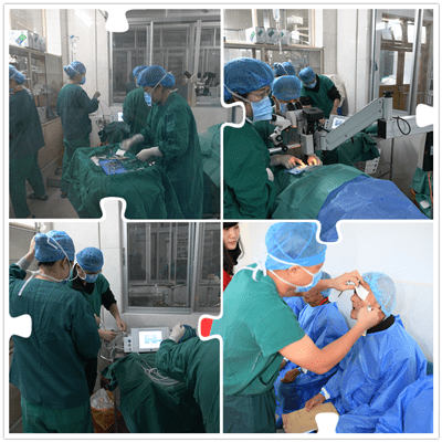 狮友们一下车,立即搬运手术设备,医疗团队在手术室布置手术现场,狮友们在微创中心入口处布置接待患者的现场,包括为患者做登记的工作台及文具、给患者用的一次性手术外套、头套、鞋套等。在司马晶狮姐、魏承庆狮兄、肖良文狮兄、邓球伴狮兄、邱建平狮兄等的指导、协调下,整个工作紧张有序、配合默契地开展了。部分狮友已多次参加过光明行活动,传、帮、带的团队精神发挥得淋漓尽致,不到一个小时,就开始有预约好的患者来到现场了。狮兄狮姐开始了接待工作,而手术室里,又是一派肃静、专注、忙碌的景象。参与辅助服务工作的狮友分成两个小组。晚饭后,第二小组的狮友替换了第一小组的狮友,而医疗团队的医生护士们,除了在工作间隙吃个快餐,一直连续作战至晚上10点多。