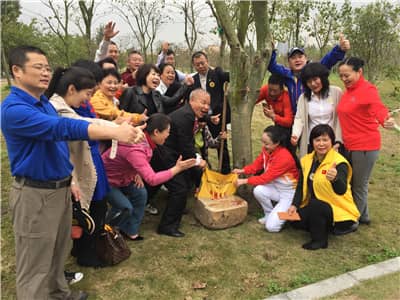 深圳狮子会2015-2016年度会长林桃和大连会员管理委员会主席屈长利在现场狮友们的共同见证下一起种下象征两区狮谊长存的菩堤树。大连的狮友们纷纷表示“之前早有耳闻,这是一个全国公益慈善创新特色项目,是一个倡导热爱地球美好家园,造福子孙后代的项目”,并积极认捐。他们希望以后每年都来深圳“探亲”,来狮子林看看自己认捐的树。大连会员管理委员还当即预留了其中一块区域,并指定狮子林中的一条小路命名为“大连路”。