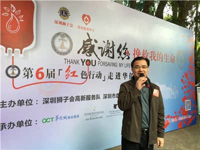 启动仪式由高新服务队第一副队长、深圳海景奥思廷酒店总经理王博狮兄主持。李桦队长表示,红色行动已第三次走进华侨城,每次都得到该集团的大力支持,她代表高新服务队表示衷心感谢。林桃会长介绍了本届“红色行动”自启动以来的整体情况,截至目前,总共组织了3600多人参与献血,为深圳市血液中心提供了130多万毫升的血液,她代表深圳狮子会感谢每一位献血者,每个献血者都是英雄,正是有那么多的大爱人士,才让深圳的冬天更加温暖,她更感谢深圳市血液中心的全力配合,因为有他们的合作,深圳狮子会的“红色行动”成为了非常有影响力的品牌活动项目。