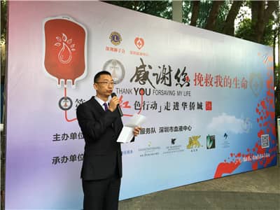 深圳市血液中心主任卢亮介绍了今年血液中心的情况。因为有深圳狮子会的“红色行动”,血液中心目前库存的各种血型都能满足各医院的用血需求。他真诚感谢深圳狮子会,感谢每位献血者,深圳市血液中心也一定会全力与深圳狮子会合作,将“红色行动”项目做得更好。