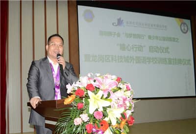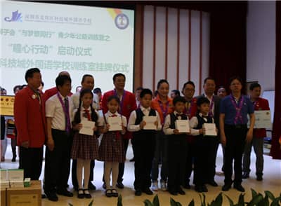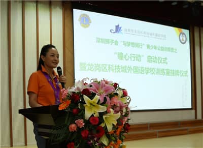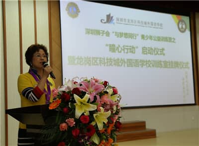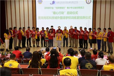 2016年4月22日,深圳狮子会40多名狮友来到位于龙岗区坂田街道的龙岗区科技城外国语学校,参加在这里举行的深圳狮子会“与梦想同行”青少年公益训练营之“瞳心行动”启动仪式暨龙岗区科技城外国语学校训练室挂牌仪式。该项目由深圳狮子会主办,龙岗区科技城外国语学校及深圳狮子会东方玫瑰、联合、慈善收藏、华林、南海、幸福、盐田、宾治、华缘、天成、红荔、天恩、华磊、新安、地王、主会、滨河、福爱、松明、笔架山、启航等21支服务队共同承办,低视力项目委员会、社区服务委员会参与协办,共捐款30万元,帮助深圳市10所学校建立视力训练室,改善学生视力。