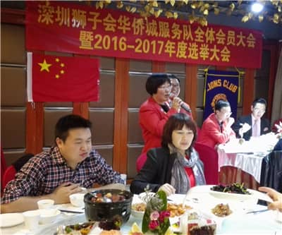 2016年3月23日晚,深圳狮子会华侨城服务队2015-2016年度第八次例会暨2016-2017年度选举大会在福田区香蜜湖度假村醉风阁酒楼举行。华侨城服务队前队长唐全慧、王劲松、吴嘉宁、钟如仕、林庆辉、王煦、李春畅等狮友以及准狮友等20余人出席会议。深圳狮子会本年度第十四分区主席洪志民受邀出席例会。会议由郭业队长主持。