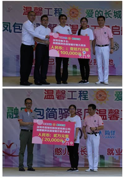 上午的活动结束后,李卫华、曾石养、张红象、骆劲松等狮友们又马不停蹄地赶往龙岗区清林路留学生公寓参加融凤包简驿餐厅温馨工程启航典礼。过去的两年里,深圳狮子会华林服务队联合深圳市职康残疾人服务中心举办了憨儿寻宝、夏令营、和平海报等系列服务活动,帮助这群特殊儿童逐渐成长。为帮助他们更好融入社会、独立自强、成龙成凤,特捐款12万元帮助他们建成融凤包简驿餐厅,解决憨儿就业问题。