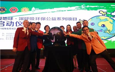 6月4日下午,中国狮子联会温馨工程·“爱地球 深呼吸”大型公益环保服务项目在杭州市举行启动仪式。项目由深圳狮子会发起,中国狮子联会主办,深圳狮子会、广东狮子会,中国狮子联会大连、青岛、北京、浙江、沈阳、陕西、哈尔滨、四川会员管理委员会共同承办,旨在通过开展废旧电池回收、植树造林、宣传环保理念等系列环保服务,让我们生活的环境更加美好。中国狮子联会会长尤红,副会长许武顺、刘连腾、林子钰及黄炜,前副会长、常务理事雷建威,深圳狮子会2015-2016年度会长林桃、秘书长曾石养、总务长佟昕等深圳狮友及其他九个地区的会长/主席、狮友代表共200余人参加启动仪式。仪式由深圳狮子会品牌服务委员会主席冯其江主持。