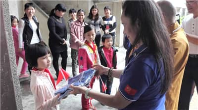 林波队长总结了服务队在广东省惠州市惠来县达摩孤儿院的捐赠情况。在这次活动中,景田服务队的狮友们自筹资金,纷纷献上爱心,不顾路途遥远,为孤儿院的孩子们送去了100套新桌椅及100套新衣服。他感谢大家的付出,感谢景田服务队狮友们的团结合作,为每一次的服务做出了积极的贡献。候任队长朱道英表示,当看到孩子们用上新的桌椅,穿上干净、整齐、合体的新衣服并露出天真的笑脸时,什么累都忘记了。她希望孩子们能好好学习,狮友们继续发扬正能量,为社会创造幸福的明天。